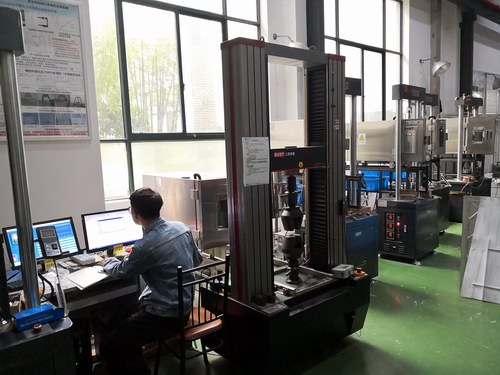 該聯合實驗室位于中南大學機電工程學院,實驗室內十余臺試驗機多為我司提供。圖為走訪現場。